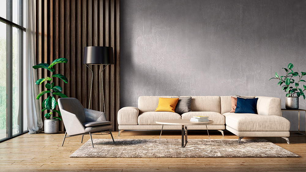 Эффект мастерски объединяет контрастные элементы — брутальную эстетику бетонной стены и деликатную фактуру натуральной замши. Идеально подходит для оформления гостиных, холов и студий, где ценится неординарный дизайн, тактильная привлекательность и практичность поверхностей.